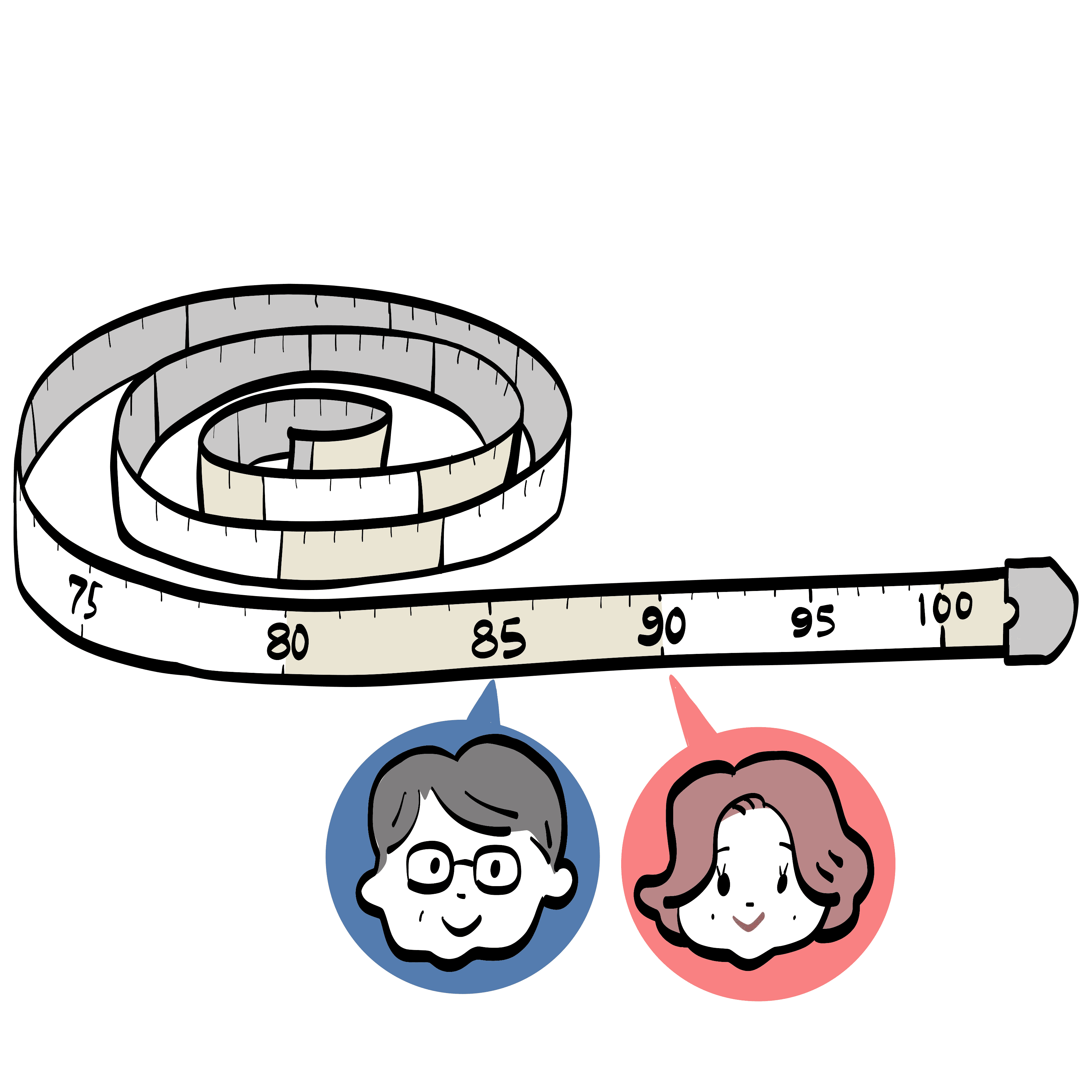 内臓脂肪の断面積100cm2を腹囲に換算すると、男性が85cm以上、女性で90cm以上に相当します。そのため、腹囲(ウエスト周囲長)を測る方法が、内臓脂肪の蓄積量を知る基準として健康診断などでも取り入れられているのです。ちなみに女性の基準のほうが5cm長いのは、女性は男性に比べて皮下脂肪が多くついているからです。